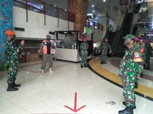 JAKARTA – Untuk mencegah kasus penyebaran covid 19 jelang Idul Fitri 1442 H, jajaran aparat TNI Tiga Matra melakukan pengamanan protokol kesehatan dibeberapa lokasi pusat perbelanjaan.