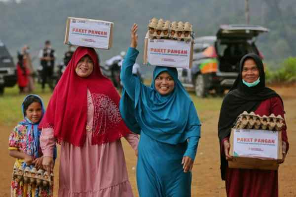 Warga usai menerima bantuan paket sembako dari ACT Lhokseumawe