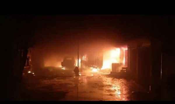 Saat awak media mewawancarai salah satu saksi mata mengatakan”kejadianya pada pukul 21.30 wib saya yang berdekatan rumah dengan matrial kaget ada suara keras seperti suara letupan dan ada percikan api disekitaran box listrik dan dalam waktu cepat karena didepan tersebut ada bahan cat dan bahan kimia lainya langsung merembet kedalam dan saya liat semua didalam matrial tersebut ada mobil box dan mobil losbak terbakar ludes,ada 5 mobil pemadam langsung datang pak”.