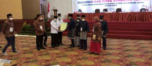 “Menetapkan pasangan calon gubernur – wakil gubernur nomor urut 3 saudara DR H Al Haris dan saudara Abdullah Sani M.Pdi dengan perolehan suara sebanyak 600.733 suara atau 38,26% dari total suara sah sebanyak 1.570.285 suara sebagai gubernur dan wakil gubernur terpilih tahun 2020,” ujar M Subhan.