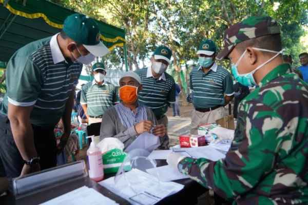 Kegiatan dalam mendukung program pemerintah dengan melaksanakan serbuan vaksinasi massal percepat penanganan Covid-19 berjalan aman, lancar dan kondusif. (S Erfan Nurali Sumber:Dispenad)