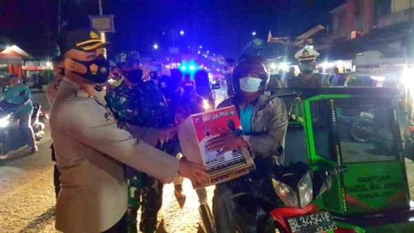 ACEH – Menindaklanjuti instruksi Kapolri Jenderal Pol Listyo Sigit Prabowo, Polda Aceh beserta seluruh Polres secara serentak melaksanakan patroli berskala besar sekaligus membagikan bantuan sosial berupa sembako kepada masyarakat yang terdampak Covid-19.