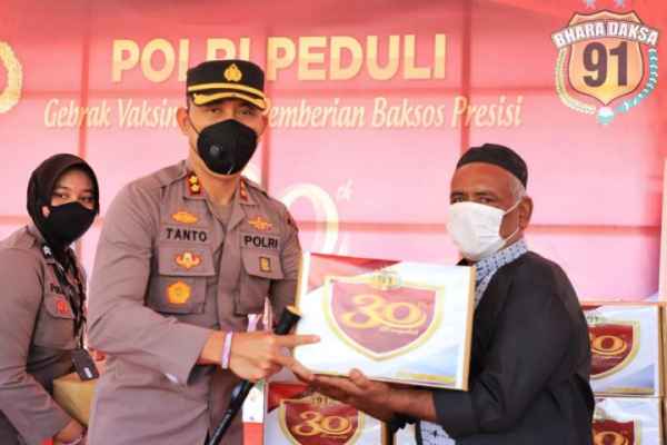 LHOKSEUMAWE – Polres Lhokseumawe menggelar gebyar vaksinasi dan pembagian bantuan sosial (bansos) di sejumlah titik di wilayah hukum Polres Lhokseumawe, Sabtu (31/7) kemarin. Dan kegiatan ini dalam rangka Polri Peduli 30 tahun mengabdi alumni Akpol 91 Bhara Dhaksa.