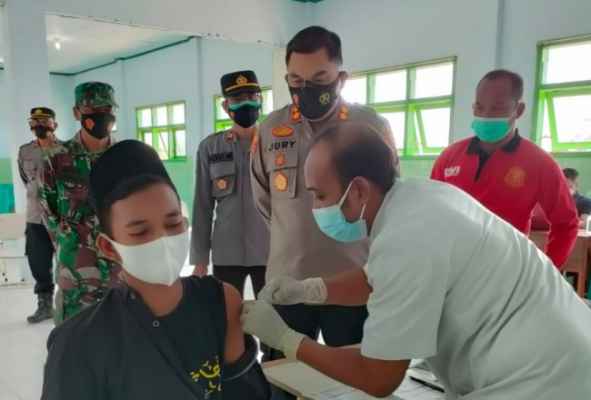 MADIUN – Sedikitnya 140 orang terdiri dari santri, kyai dan ustad mendapatkan vaksin jenis Sinovac yang digelar Polres Madiun di Pondok Pesantren (Ponpes) Al Basyariah, Desa Kenongrejo, Pilangkenceng, Kabupaten Madiun.