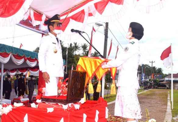 Bupati Nias Yaatulo Gulo menjadi inspektur upacara dalam peringatan Hari Ulang Tahun ke-76 Kemerdekaan Republik Indonesia yang dilaksanakan di Lapangan Beringin Heliweto Gido, Kecamatan Gido, Kabupaten Nias, Provinsi Sumatera Utara, Selasa (17/08/2021).