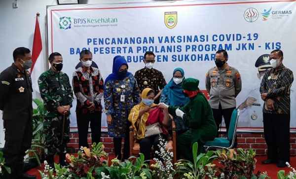 SUKOHARJO – Masyarakat penderita penyakit kronis diabetes melitus dan hipertensi yang menjadi peserta Jaminan Kesehatan Nasonal-Kartu Indonesia Sehat (JKN-KIS) jadi sasaran vaksinasi corona. Pencanangan vaksinasi dilakukan oleh Bupati Sukoharjo, Etik Suryani di RSUD Ir Soekarno, Jumat (27/8/2021).