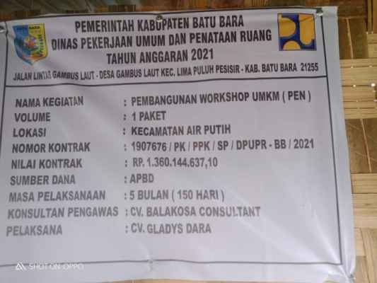 Hal itu terlihat dari salah satu pekerjaan Pembangunan Workshop UKM (PEN) yang menelan anggaran mencapai Rp. 1.360.144.637,10 dilaksanakan oleh CV. Gladis Dara dan Konsultam Pengawas CV.Balakosa Consultant yang tidak di awasi sebagai mana mestinya.