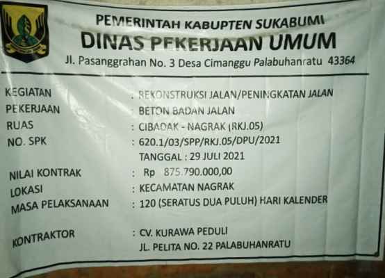 SUKABUMI – Pembangunan Rekontruksi atau peningkatan jalan dengan jenis pekerjaan Beton Badan jalan Ruas jalan Kabupaten Cibadak-Nagrak tepat nya di kampung Ciawi tali RT 03/03A Desa Cisarua Kecamatan Nagrak Kabupaten Sukabumi Menuai polemik di masyarakat.