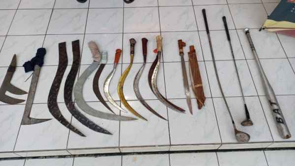 Kami juga melakukan penyisiran di sekitar lokasi alhasil kami berhasil menyita kendaraan bermotor sebanyak 41 unit berbagai merk yang ditinggal pemiliknya berikut senjata tajam jenis celurit sebanyak 11 buah, 1 buah senjata tajam jenis mandau, tongkat base ball 1 buah, stik golf 2 buah total 14 barang bukti sajam dan benda tumpul