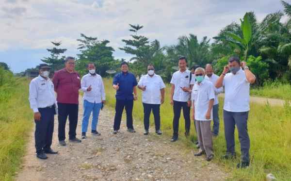 Wakil Bupati Aceh Utara, Fauzi Yusuf beserta sejumlah pejabat saat meninjau lokasi pembangunan Sport Centre di Desa Trieng, Lhoksukon