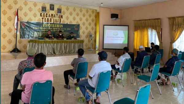 TEBO – Satgas TMMD ke,-112 Kodim 0416/Bungo Tebo gelar penyuluhan hukum terkait kebakaran hutan dan lahan (Karhutla) di kantor Camat Tebo Ilir, Senin (27/9/2021).