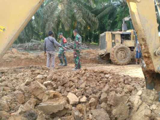 TEBO – Dandim 0416 Bungo Tebo, Letkol Inf Arianto Maskare Subagio pantau langsung pembukaan jalan TMMD di Desa Kunangan dan Kelurahan Sungai Bengkal, Kecamatan Tebo Ilir, Kabupaten Tebo, Selasa (5/10).