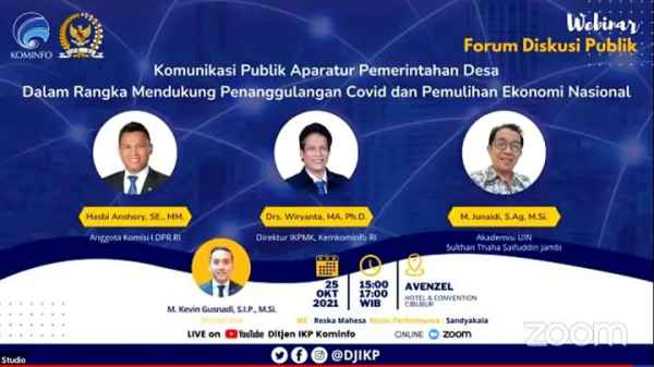 Selain Hasbi Anshory, pembicara lain dalam webinar itu yakni Direktur IKPMK Kementerian Komunikasi dan Informatika (Kominfo), Wiryanta. Ia juga menyampaikan bahwa komunikasi publik aparatur pemerintah desa berperan penting dalam pemulihan nasional pasca Covid-19.