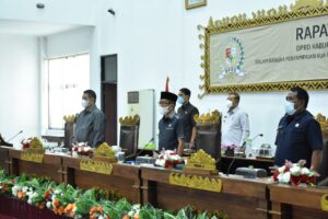 TULANG BAWANG BARAT – Paripurna DPRD Kabupaten Tulang Bawang Barat dalam rangka Penyampaian Nota Pengantar KUA-PPAS APBD Perubahan Kabupaten Tulang Bawang Barat Tahun Anggaran 2021, Kamis (19/08/2021).