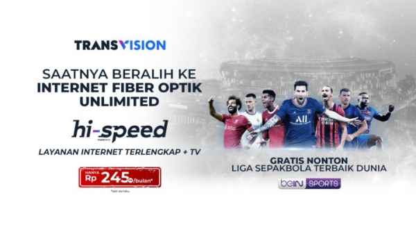 Dengan menggunakan Transvision Hi- Speed, pelanggan juga langsung dapat menyaksikan tayangan olahraga berkelas dunia mulai dari Liga Sepakbola Terbaik Dunia seperti Liga Prancis, Spanyol, Italia dan berbagai liga lainnya dari channel beIN SPORTS.