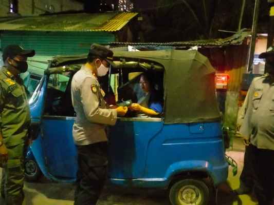 Petugas menegur serta mengingatkan warga yang beraktifitas di lokasi keramaian dengan humanis serta membagikan masker kepada warga yang melanggar protokol kesehatan.*(Noto)