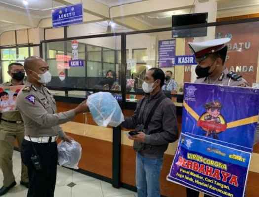 Tidak hanya melaksanakan edukasi dan sosialisasi kepada masyarakat untuk selalu tertib dan berdisiplin berlalulintas saat berkendara akan tetapi juga membagikan masker kepada pengendara, hal ini dilakukan guna menekan penyebaran Covid-19.