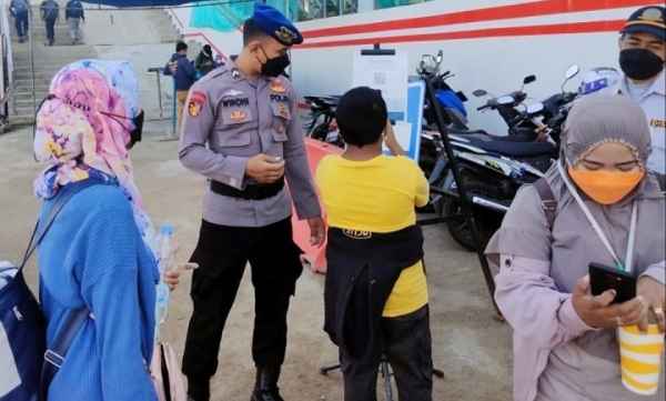 Personel Polres Kepulauan Seribu yang ditugaskan di Pelabuhan Kaliadem Muara Angke dan bergabung dengan Instansi terkait setempat selain melakukan kegiatan pengamanan juga melaksanakan kegiatan pengawasan protokol kesehatan bagi warga dan wisatawan yang akan ke Pulau Seribu.