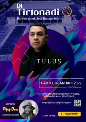 Bertempat di Tirtonadi Hall yang berada di lantai 2 (dua) Terminal Bus Antar Kota Antar Provinsi (AKAP) tersebut, akan digelar konser musik dan pertunjukkan seni secara live streaming bertajuk “Di Tirtonadi, Berbuat untuk Seni Budaya Solo”, yang menghadirkan penyanyi ternama Tulus dan seniman besar Sardono W. Kusumo atau dikenal dengan sebutan Mas Don.