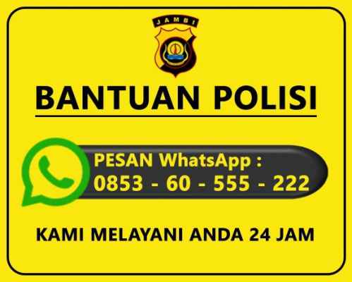 SAROLANGUN – Polda Jambi merilease nomor bantuan 085-360-555-222 yang bisa dihubungi masyarakat melalui whatsapp messenger atau media perpesanan pada aplikasi whatsapp.