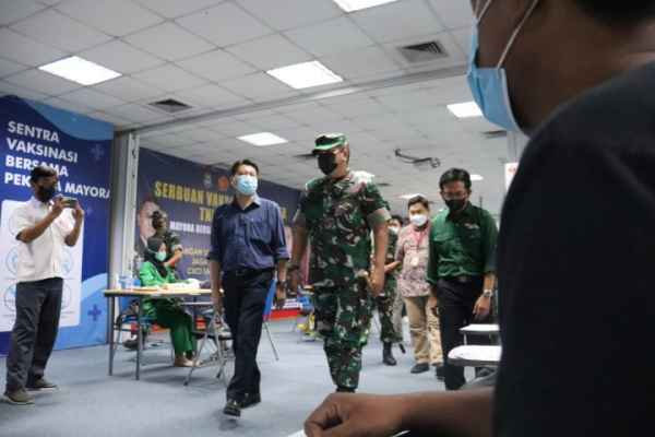 Danrem 052 /Wkr Meninjau Pelaksanaan Vaksinasi Tahap 3 Booster ,Kepada Karyawan PT Torabika Eka Semesta (Mayora Group) yang diselenggarakan oleh Kodim 0510/TRS