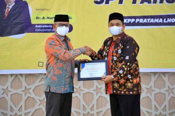 Di antaranya kepada Bupati Aceh Utara H Muhammad Thaib dan Sekda Dr A Murtala, MSi. Keduanya diberikan penghargaan karena dinilai telah melakukan pelaporan SPT Tahunan pajak orang pribadi secara benar dan cepat, tepat waktu sesuai jadwal.