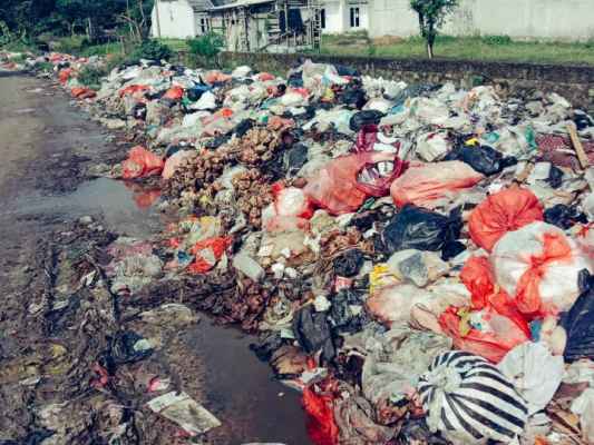 Berdasarkan pantauan di lokasi, Hampir setengah badan jalan terpenuhi sampah yang belum dipastikan darimana tumpukan sampah tersebut.