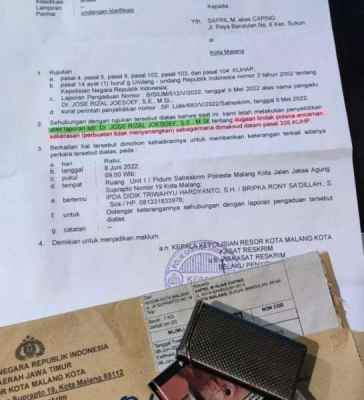 Diketahui, atas peristiwa tersebut Syafril dilaporkan anggota DPRD Kota Malang Fraksi PSI Jose Rizal Joesoef dengan dugaan perbuatan tidak menyenangkan yang dimaksud dalam Pasal 335 KUHP. Dan, harus memenuhi panggilan kepolisian Polresta Malang Kota pada Rabu (8/6/2022).Tut