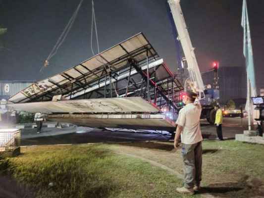 JAKARTA – Satuan Polisi Pamong Praja (Satpol PP) DKI Jakarta melakukan kegiatan penertiban tiang reklame yang sudah tidak layak dan sudah mulai keropos dikhawatirkan akan membahayakan warga penguna jalan di Jalan Daan Mogot Kalideres Jakarta Barat.(24/6/2022)