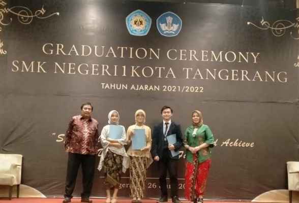 ‘’Hari ini Kami (UYM-red) berikan beasiswa bagi pelajar yang mendapatkan rangking pertama hingga Rangking ke Tiga, serta memberikan voucher sebanyak 20 orang dengan nilai 1 juta Persiswa,’’ Ucap Rektor UYM Drs. Tristonjaya pada acara Graduation Ceremony Sekolah Menengah Kejuruan (SMK) Negeri 1 Kota Tangerang yang bertempat di Ball Room Hotel Horison Great Western Serpong, Minggu (26/6/2022)