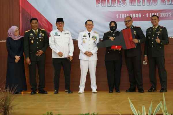 KABUPATEN BEKASI – Seluruh elemen yang tergabung dalam Forum Koordinasi Pimpinan Daerah (Forkopimda) Kabupaten Bekasi menghadiri perayaan puncak Hari Ulang Tahun (HUT) Bhayangkara ke-76 tahun di Lapangan Polres Metro Bekasi, Selasa (5/7/2022).
