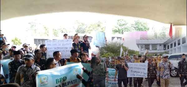 “Kami minta perubahan perbub nomor 2. BBM sudah berapa kali naik, untuk BPD yang belum pernah naik,” kata orator masa, Kamis (7/7).