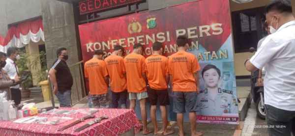 “Kelima tersangka yaitu AGJP alias A (23), T Bin M (28), U alias L (22), MPI alias I (26), dan YA alias Y (30)”,