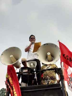 Sementara massa aksi lainnya panas-panasan sambil mendengarkan para orator di mobil komando.