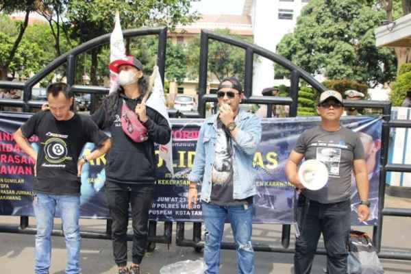 TANGERANG – Kekerasan terhadap wartawan yang dilakukan oleh oknum pejabat di Kabupaten Karawang menuai kecaman. Salah satunya, Forum Wartawan Tangerang (Forwat) menggelar aksi solidaritas di Mapolres Metro Tangerang Kota dan Pusat Pemerintah (Puspem) Kota Tangerang, Jumat (23/9/2022).
