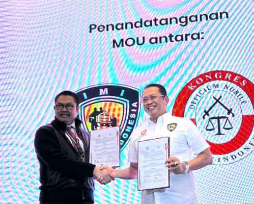 JAKARTA – Ketua MPR RI sekaligus Ketua Umum Ikatan Motor Indonesia (IMI) Bambang Soesatyo bersama Presiden Kongres Advokat Indonesia (KAI) Tjoetjoe Hernanto menandatangani nota kesepahaman antara IMI dengan KAI. Berlaku selama tiga tahun, terhitung sejak ditandatangani, serta dapat diperpanjang atas persetujuan tertulis kedua belah pihak. Melalui nota kesepahaman ini, KAI dan IMI akan bekerjasama memberikan pembinaan hukum melalui konsultasi dan bantuan hukum terhadap program kerja IMI maupun kepada para pemilik Kartu Tanda Anggota (KTA) IMI.
