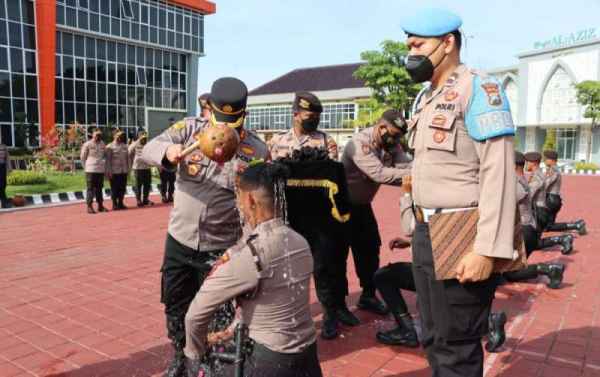 GRESIK – Polres Gresik menggelar upacara Pembinaan tradisi penerimaan Bintara Remaja (Baja) di halaman Mapolres Senin (24/10/2022). Tradisi bela diri dari Bintara unjuk kebolehan di halaman Mapolres Gresik.