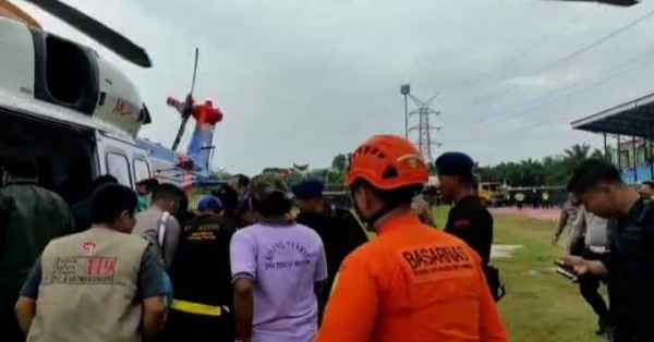 Kapolda berhasil dievakuasi via udara, sekitara pukul 14.27, Selasa (21/02/2023). Saat ini tengah dalam perjalanan udara dari lokasi jatuhnya helikopter ke Posko KONI Bangko.