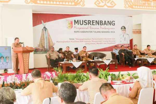 TULANG BAWANG – Pemerintah Daerah Kabupaten Tulang Bawang melaksanakan agenda Musyawarah Rencana Pembangunan (Musrenbang) dalam rangka penyusunan Rencana Kerja Pemerintah Daerah (RKPD) kabupaten Tulang Bawang 2024 yang bertempat di Gedung Serba Guna (GSG) kabupaten setempat, Selasa (07/03/2023).