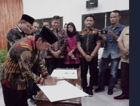 Ketua DPRD Sarolangun Tontawi Jauhari menandatangani berita acara forum konsultasi publik
