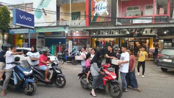 MuaraBungo,-Akbar Distro collection Muara Bungo, turut berbagi takjil kepada masyarakat jelang buka puasa. Pembagian takjil di pusatkan di jalan H Hanafie pasar bawah Muara Bungo, Minggu (16/04/2023).
