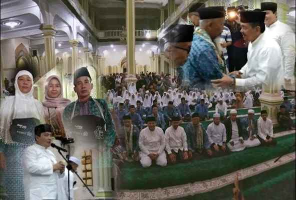 Ribuan masyarakat Sarolangun saat mengantarkan keberangkatan jch Sarolangun di halaman mesjid alfalah Sarolangun