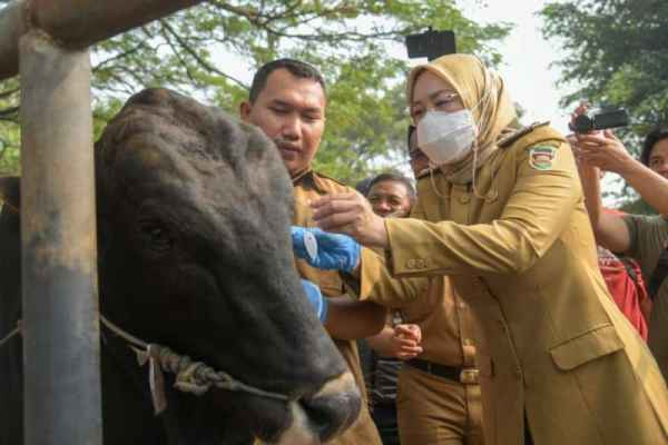 Bupati Purwakarta Hj.Anne Ratna Mustika menerjunkan secara langsung petugas vaksinasi dari Dinas Perikanan Dan Peternakan (Diskanak) ke semua pasar hewan ternak serta lokasi peternakan di 17 kecamatan yang ada diwilayah Kabupaten Purwakarta