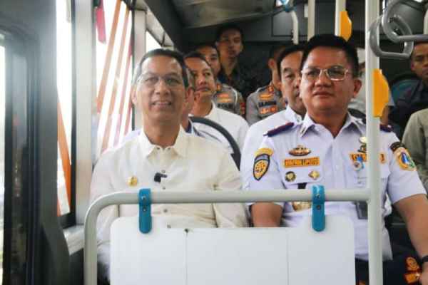 JAKARTA – Pj Gubernur DKI Jakarta Heru Budi Hartono bersama Kepala Dinas Perhubungan DKI Jakarta Syafrin Liputo resmi melakukan uji coba rute baru transjakarta jurusan Terminal Kalideres bandara Soekarno Hatta (5/7/2023)