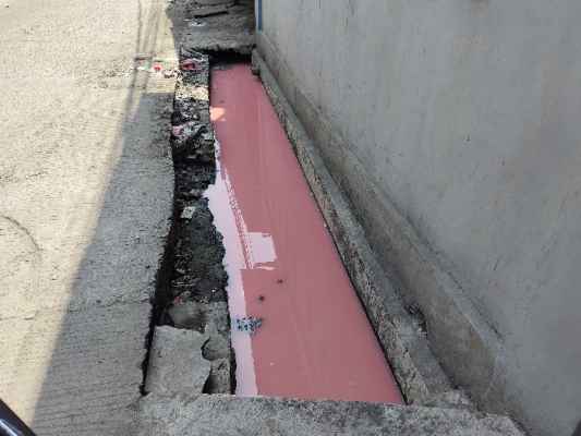 Dari penelusuran wartawan di lokasi terlihat air di saluran warga berubah warna menjadi merah pekat yang bisa mencemari lingkungan akan berdampak bahaya bagi kesehatan masyarakat sekitar