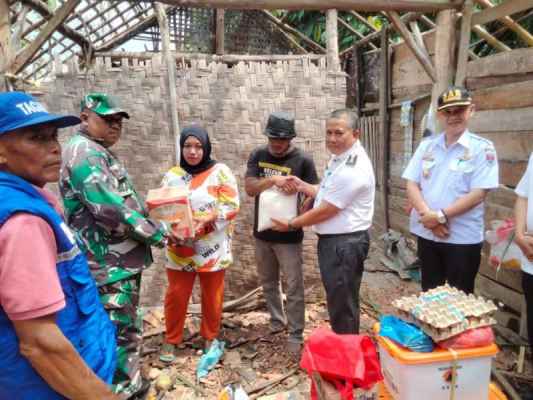 Pemkab Mesuji menyalurkan bantuan kepada korban Angin Puting Beliung, warga Desa Fajar Asri, Kecamatan Panca Jaya, bernama Sohidi (45).