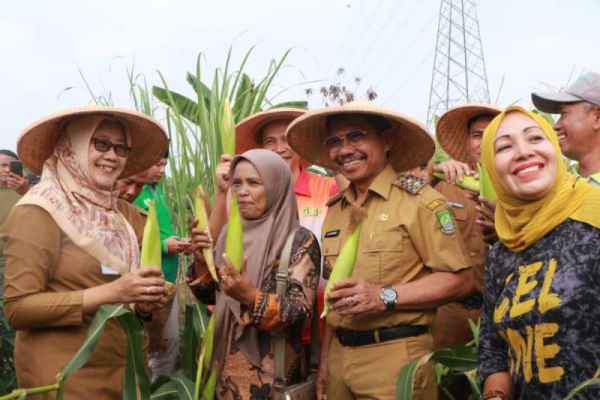 Bersama para petani, Wakil Wali Kota Tangerang, H. Sachrudin, didampingi Kepala Dinas DKP Kota Tangerang, Muhdorun, dan Asisten Perekonomian dan Pembangunan Kota Tangerang, Yetty Rohaeti, ikut turun ke lahan memanen jagung yang sudah siap panen sambil bercengkrama dengan para petani perintis di wilayah tersebut.