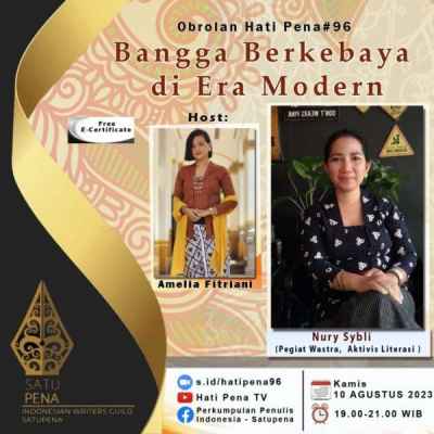 Obrolan Hati Pena #96 tentang budaya bangga kebaya itu akan berlangsung di Jakarta pada Kamis, 10 Agustus 2023, pukul 19.00-21.00 WIB.