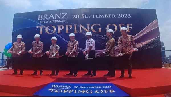 JAKARTA – Pembangunan BRANZ Mega Kuningan terus dikebut dan kini telah masuk tahap penutupan atap atau topping off. Prosesi topping off ini ditandai dengan penanaman paku di lantai teratas oleh jajaran manajemen Tokyu Land Indonesia.