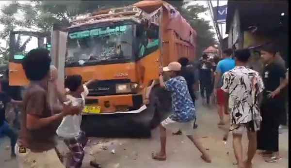 Ia menambahkan, akibat kejadian tersebut warga yang melihat langsung merusak mobil truk tanah. Sementara itu, sopir kabur dan sedang dikejar warga.